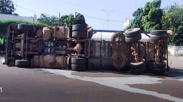 Un camion-citerne transportant du carburant et venant de Ouagadougou s’est renversé dans l’après-midi de jeudi au niveau de la place de la nation de Bobo-Dioulasso.