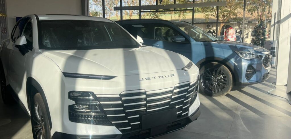 À l’intérieur, les visiteurs découvrent un vaste espace d’exposition où brillent les modèles JETOUR et JMC, tous flambant neufs.