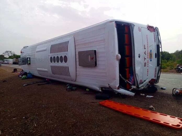L’accident a eu lieu ce samedi 08 juin 2024 aux environs de 16 heures sur la Route Nationale 1.  Le car qui a quitté Ouagadougou pour Bobo-Dioulasso précise le ministère, a achevé sa course sur le bas-côté de la route dans le village de Ividié, entre Tita et Baporo.