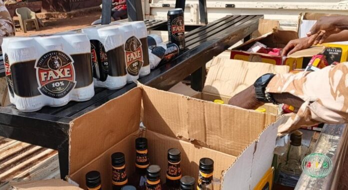 Selon l’AIB, 107 bouteilles et petits cartons ont été saisis, dont 40 bouteilles de whisky et de pastis titrant entre 40 et 45 degrés d’alcool ainsi que plusieurs boissons frelatées.