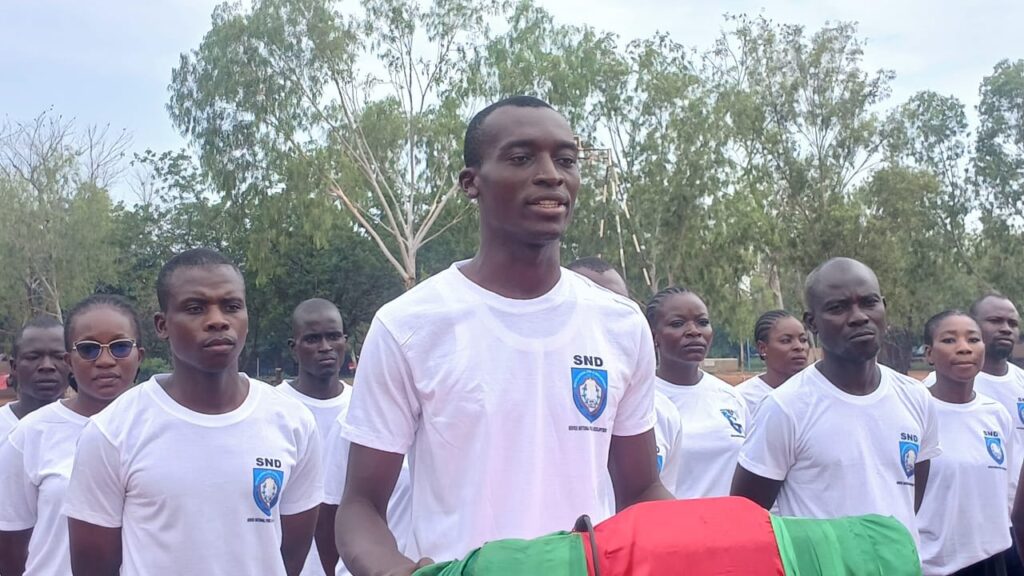 Le Lieutenant-colonel Mohamed Karambiri est le coordonnateur des formations au SND. « C’est un véritable défi qui a été relevé par l’ensemble des encadreurs car il n’était pas évident de conduire cette immersion en trois semaines. La formation militaire a consisté à inculquer des notions de sécurité militaire, d’hygiène et de secourisme, d’instruction sur la montée des couleurs, du règlement de service dans les armées, de l’ordre serré et de l’éducation physique et sportive. La formation civique et morale, quant à elle, a porté sur le civisme et la citoyenneté, les droits et devoirs du citoyen, l’histoire du Burkina Faso, la lutte contre la corruption, les institutions et les symboles de l’État, l’idéologie de la Révolution démocratique et populaire, entre autres. » a-t-il déclaré.
