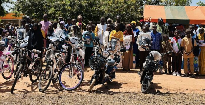 Les deux (02) meilleurs élèves au Certificat d’Études Primaires (CEP) et les deux (02) enseignants les plus méritants ont reçu, en plus, des vélomoteurs et des motos.