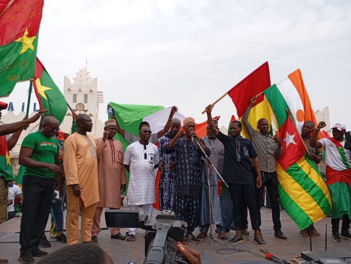 Des bobolais de tous bords et de toutes catégories sociales se sont réunis à la place Tiefo Amoro de Bobo-dioulasso pour soutenir le président Ibrahim Traoré, à l’occasion d’un meeting organisé par la Coordination Nationale des Associations de la Veille Citoyenne (CNAVC) en présence des autorités administratives, militaires, paramilitaires et coutumières de la ville de Bobo-Dioulasso.