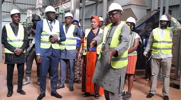 C’est par ADIPROD IND SA, une unité de transformation de graines oléagineuses et amandes en construction que le ministre Aboubacar Nacanabo a débuté sa série de visite. Il a fait le tour de l’usine en construction. Le ministre s’est émerveillé du niveau d’investissement élevé et s’en est montré fier. Ainsi, il a encouragé la promotrice du projet et réaffirmé l’engagement du gouvernement à continuer de soutenir ces genres d’investissements. Une visite qui n’a pas laissé Oumou Diallo, promotrice du complexe industriel, indifférente.