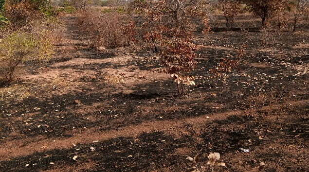 « L’intention de nuire vient à l’esprit lorsque l’on se met à scruter cette plantation d’anacardiers touchée par les flammes de feu de brousse ».