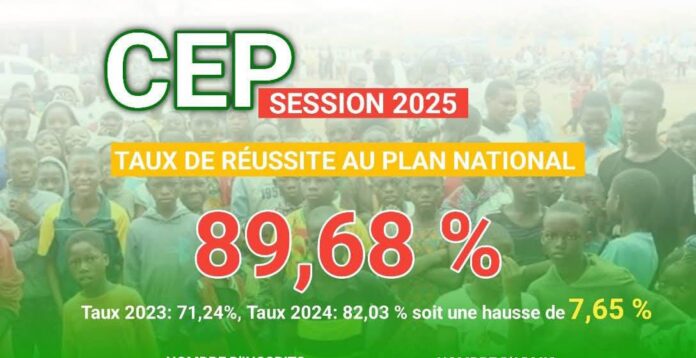 89,68%. C’est le taux de succès au certificat d’étude primaire, session de 2025 au plan national, contre 82,03% en 2024, soit une hausse 7,65%.