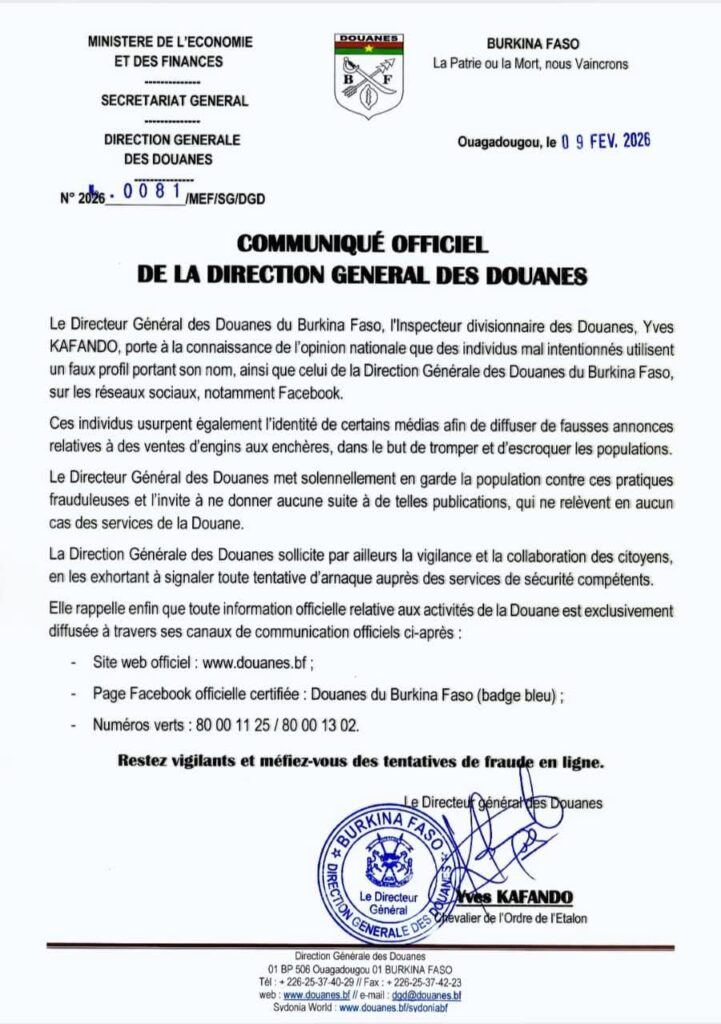 La Douane invite les citoyens à la vigilance, à ne donner aucune suite à ces annonces et à se référer uniquement à ses canaux officiels pour toute information.