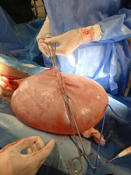 L’opération a concerné une jeune patiente présentant un volumineux kyste ovarien à contenu liquidien, pesant plusieurs kilogrammes.