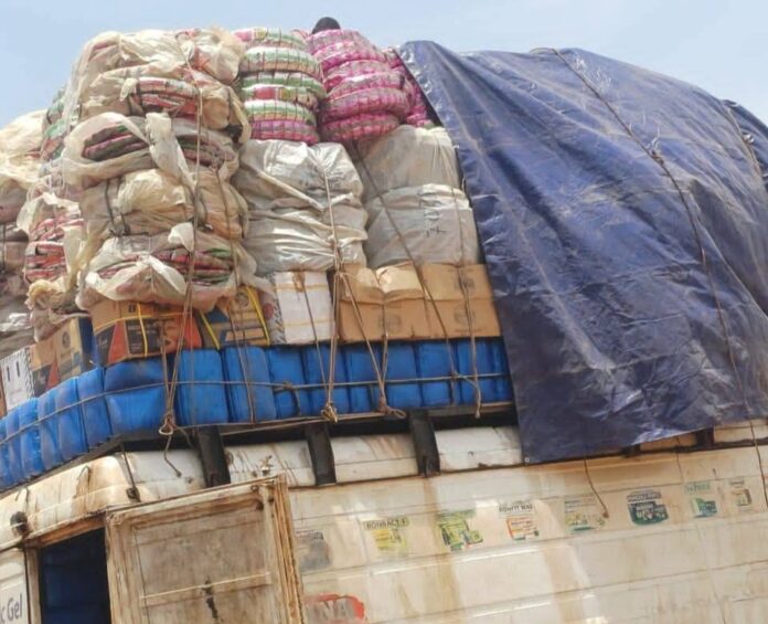 À Bittou, un véhicule de type « Ben Boss » transformé en soute clandestine a été intercepté avec plus de 11 000 litres d’huile moteur et un important stock de pneumatiques destinés aux tricycles, vélos et motos. La cargaison frauduleuse est estimée à 58 430 000 FCFA.