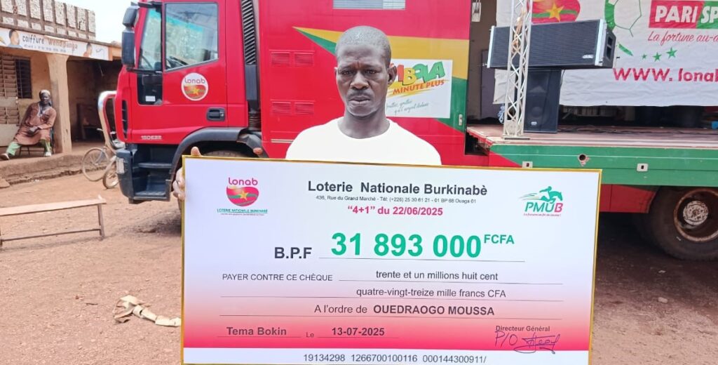 Avec une mise de 1400 FCFA, Moussa Ouédraogo, commerçant de son état, a gagné 31 893 000 de F CFA pour avoir trouvé la bonne combinaison au 4+1 du 22 juin 2025.