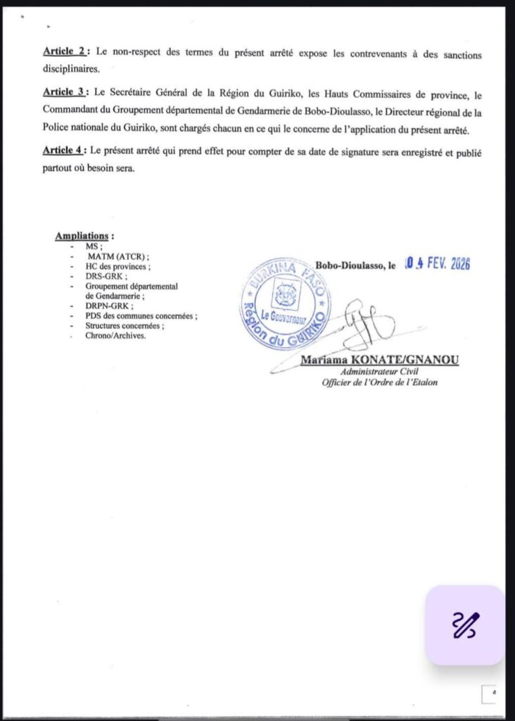 La mesure de fermeture est entrée en vigueur le 4 février 2026 et reste applicable jusqu’à nouvel ordre. Le gouverneur a par ailleurs rappelé que tout non-respect des termes de l’arrêté expose les contrevenants à des sanctions disciplinaires, conformément à la réglementation en vigueur.