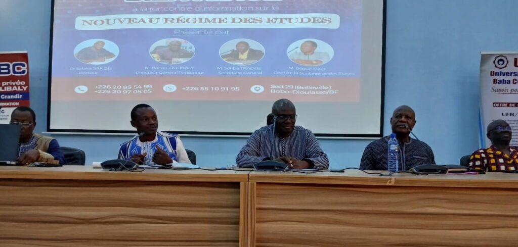 L’Université privée Baba Coulibaly (UBC) a organisé, le vendredi 21 novembre 2025, une rencontre d’échanges et d’information avec les étudiants inscrits pour l’année académique 2025-2026. Objectif, leur présenter le nouveau régime des études instauré par le ministère de l’Enseignement supérieur. La rencontre s’est tenue au siège du campus à Bobo-Dioulasso.