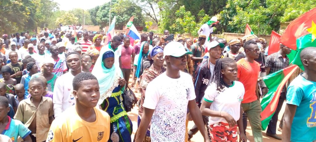 Le bureau national par la voix de Omar Michel Kopia a expliqué les objectifs de la fédération des associations et mouvements Burkina Rempart. Après cela, place à la marche, les marcheurs ont fait le tour de la ville de Sindou avec des gadgets et des pancartes à l’effigie du capitaine Ibrahim Traoré. Et sur d’autres pancartes, on pouvait lire « non à la France ». Les marcheurs du jour brandissaient des drapeaux Russes. Leurs slogan « Ib on vous croit, on vous suit, on vous soutient », etc.