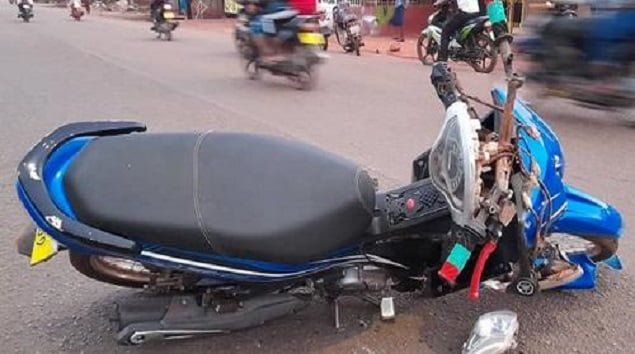 A moto avec son accompagnant sur le boulevard de la révolution au niveau de la chapelle Saint-Paul de Ouezzin-Ville, ils cognent un poulain en divagation et se blessent tous les deux.
