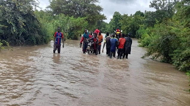 Ainsi après 2 heures d’attente, les jeunes forment une haie et essaient de traverser pour jauger le niveau de l’eau. Chose qu’ils ont réussi avant de revenir de l’autre rive se trouvant à plus de 100 mètres avec une mobylette soulevée au-dessus de leurs têtes avec le niveau de l’eau presqu’à leurs coups.