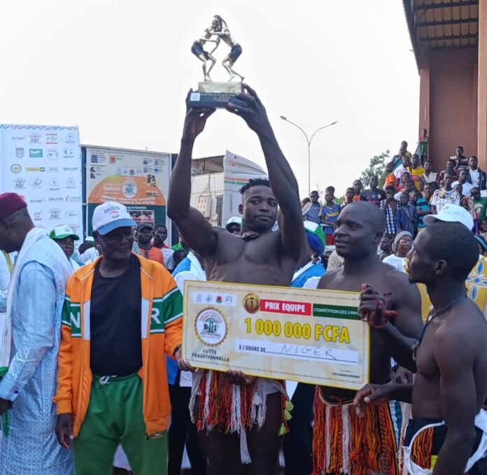 La finale Open de l’AES est remportée par le champion national du Niger en lutte traditionnelle. Il repart avec le premier prix composé d’un million de FCFA et d’un trophée. Chez les dames, c’est Rihanata Diallo qui s’est faite championne de la compétition Open (toutes catégories confondues). Elle reçoit une enveloppe d’un million de FCFA, une nouvelle moto et un motoculteur.