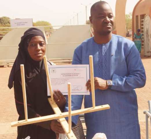 Harouna Kaboré remettant symboliquement un métier à tisser