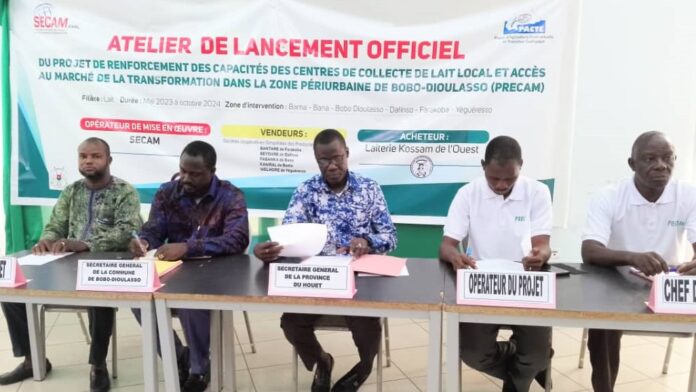 La société d’études, de conseils et d’assistance multisectorielle (SECAM) a procédé au lancement officiel du projet de renforcement des capacités des centres de collecte de lait local et accès au marché de la transformation dans la zone périurbaine de Bobo-Dioulasso (PRECAM) le mardi 11 juillet 2023. Les objectifs sont entre autres de présenter le contenu et la stratégie de mise en œuvre du projet aux partenaires et bénéficiaires, de recueillir des contributions et orientations des tutelles techniques et financières. Ce lancement a eu lieu à Bobo-Dioulasso en présence des autorités communales et des acteurs de la filière lait.