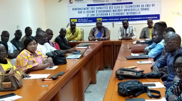 De concert avec l’Organisation Internationale du Travail (OIT) et le Ministère du Sport, de la Jeunesse et de l’Emploi, le Conseil National de l’Économie Informelle du Burkina Faso (CNEI-BF) a organisé à Bobo-Dioulasso, un atelier de renforcement de capacités de ses élus et techniciens sur le régime d’assurance maladie universelle (RAMU) et son extension à l’économie informelle. L’objectif est de permettre aux différents acteurs d’appréhender et de mieux comprendre les enjeux de ce régime de protection sociale. L’atelier s’est tenu dans la journée du lundi 09 septembre 2024 en présence d’acteurs venus de plusieurs régions du pays.