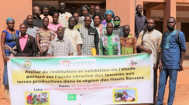 Ce lundi 7 février 2022, la Plateforme Multi Acteurs sur le foncier (PMAF) dénommée Land for Life a tenu un atelier de restitution et de validation de l’étude portant sur l’accès sécurisé des femmes aux terres productives dans la région des Hauts-Bassins. Cet atelier a eu lieu dans la salle de réunion de l’Union nationale des producteurs de coton du Burkina Faso à Bobo-Dioulasso.
