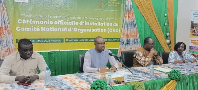 Le comité national d’organisation (CNO) de la 21ème édition de la semaine nationale de la culture, SNC Bobo 2024, a été officiellement installé dans la matinée de ce mardi 05 mars 2024 à Bobo-Dioulasso, sous la présidence de Jean Emmanuel Ouédraogo, ministre d’Etat, de la communication, de la culture, des arts et du tourisme.