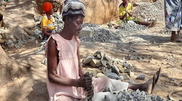 Sita Sanou, femme âgée de 62 ans, fait partie des femmes du village de Kôrô qui font du concassage des granites, leur principale source de revenus.